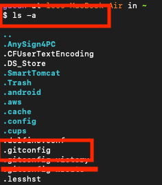 ~(/Users/myName) 경로에 .gitconfig 파일이 있을 것이다.
