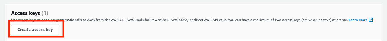 스크롤하여 내리면 Access keys 를 발급받을 수 있는 버튼이 있다.