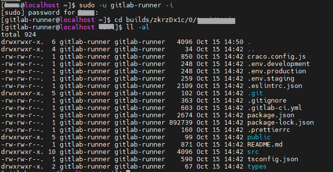 gitlab-runner를 설치하면 gitlab-runner가 사용자로 등록 되는데, 해당 계정으로 로그인해서 폴더를 뜯어보면 gitlab의 repository에 있는 소스코드가 clone 되어 있는 것을 확인할 수 있다.
