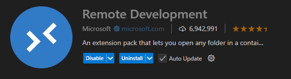 VSCode에 연결하는 방법은 Extension에서 아래 패키지(Remote Devlopment)를 설치한 후,