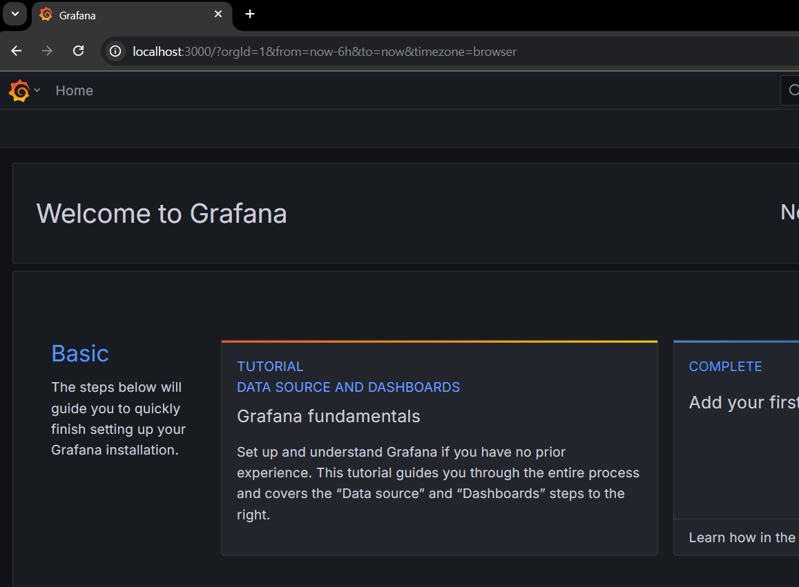 Grafana 서버를 실행해 띄워진 화면 ** 최초 로그인 아이디 및 비번 : admin/admin (로그인 시, 새 비밀번호 설정 페이지로 이동됨)