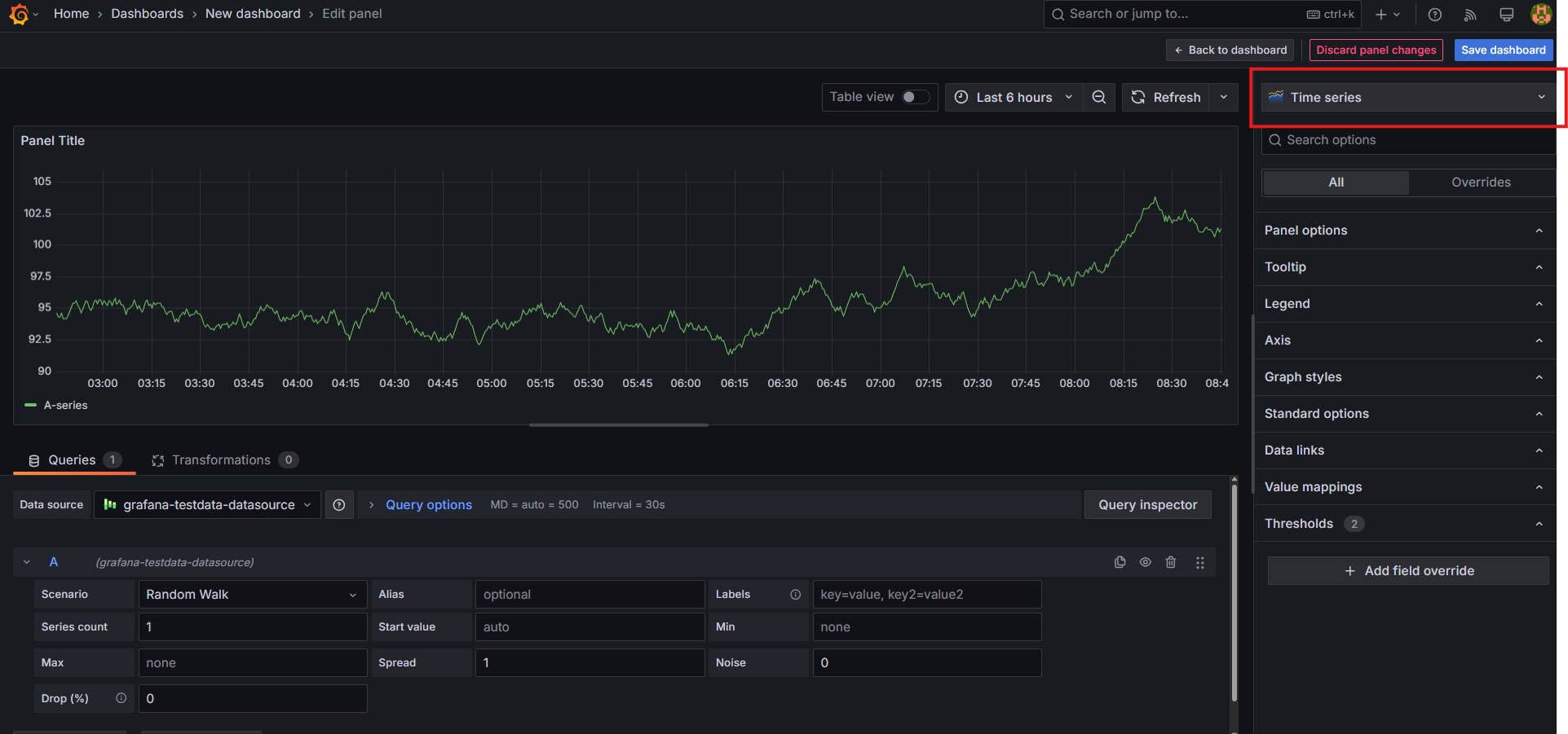 DashBoard에 panel을 추가 또는 편집하는 화면