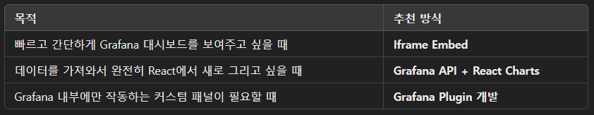 GPT의 대답 각각 장단점도 설명해줬는데, 우리 상황에서는 Grafana Plugin 개발이 적합하다는 판단을 하게 되었다.