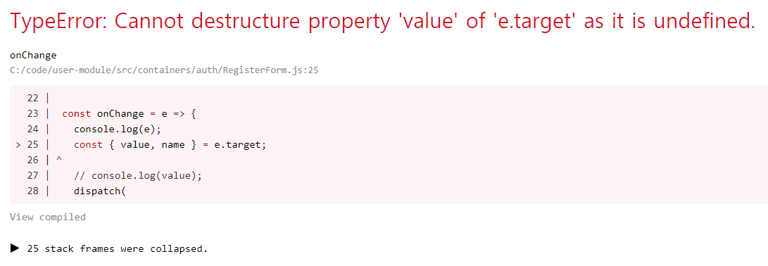 const onChange = e => { let target = e.name === 'color' ? e : e.target; const { value, name } = target; // console.log(value); dispatch( changeField({ form: 'register', key: name, value }) ); };가장 먼저 떠오르는 방법으로 우선은 실행되게 만들었습니다.
