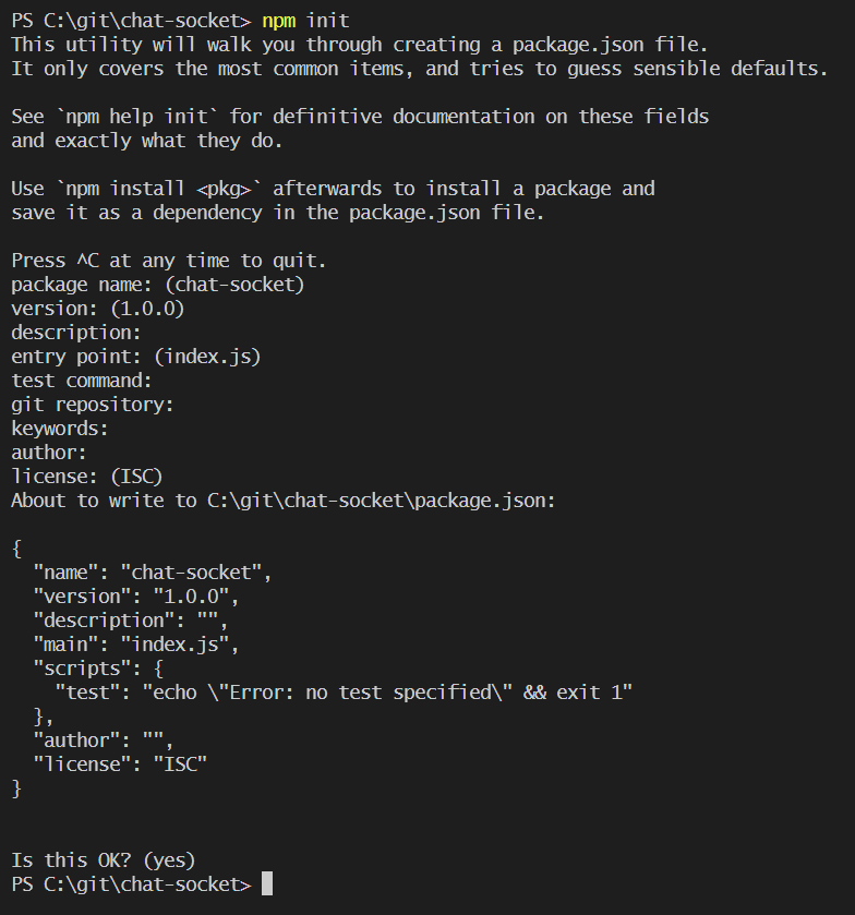 { "name": "chat-socket", "version": "1.0.0", "description": "", "main": "index.js", "scripts": { "test": "echo \"Error: no test specified\" && exit 1" }, "author": "", "license": "ISC" }ES6 문법을 사용하기 위해 babel을 npm module로 설치합니다
